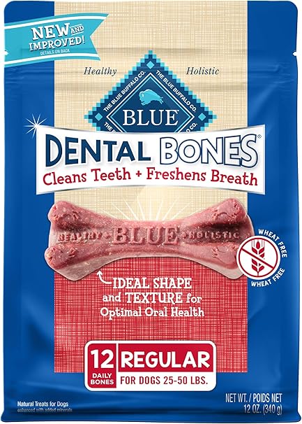 New and improved blue dental bones provide all natural oral health care in a tasty, longer lasting and highly digestible daily dental chew. Ideal shape, enhanced flavor and longer lasting, chewier texture will help: New and improved blue dental bones provide all natural oral health care in a tasty, longer lasting and highly digestible daily dental chew. Blue dental bones are your dog's ultimate natural oral health care solution.